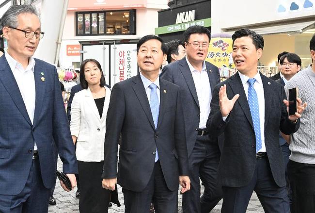 구윤철 부총리 겸 기획재정부 장관이 지난 9월 19일 오후 지역관광 활성화 및 추석맞이 골목상권 현장을 점검하고자 대전시 중구 으능정이 거리를 방문, 지역 골목상권을 둘러보고 있다.