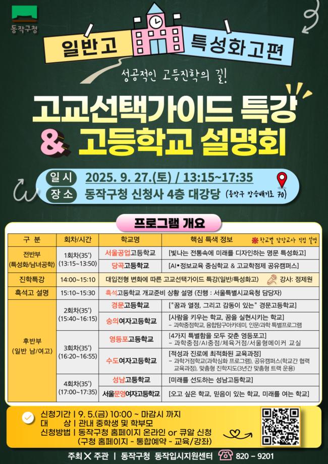 동작구, ‘고교 선택 가이드 특강 및 고등학교 설명회’ 27일 개최