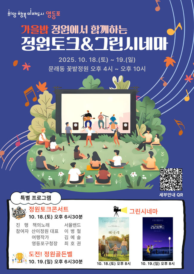 영등포구, ‘정원토크콘서트 & 그린시네마’ 개최…도심 속 가을 정원문화 향연