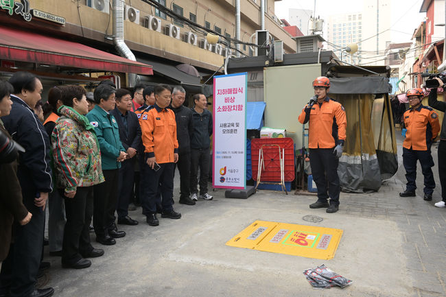 전통시장은 구조적으로 소방차 진입이 어려워 초기 대응 강화가 중요하다. 이에 구는 노후 소화기 교체 지원과 지하 매립식 비상소화장치함 설치사업을 추진했다.